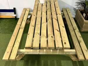 Mesa de picnic en madera de pino tratada en autoclave nivel IV.