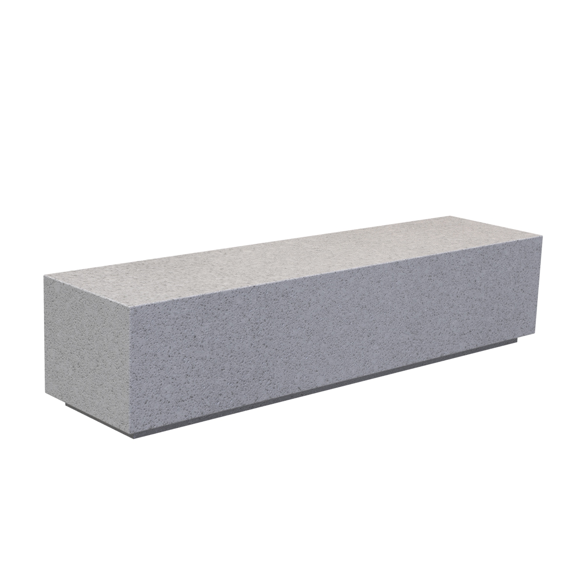 Banco de hormigón tipo Heba, con refuerzo interno de poliestireno expandido (EPS) y con textura decapada e hidrofugado, disponible en color gris y blanco.