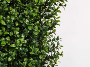 Jardín vertical boj en rollo. Formado por hojas sintéticas de polipropileno de color verde oscuro combinado con un verde claro, ofreciendo un acabado más natural y un aspecto más real.