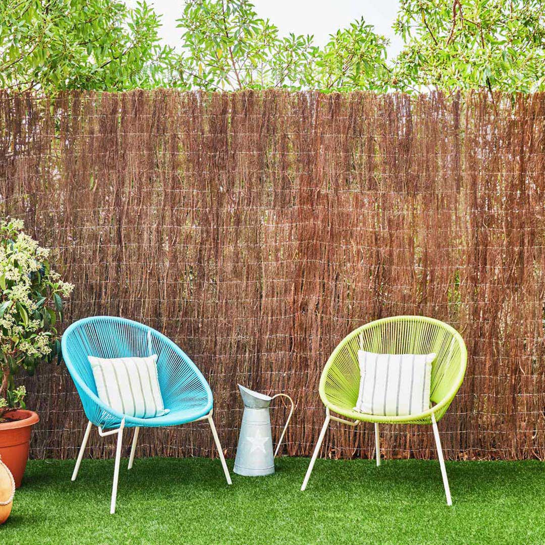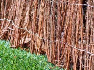 Ramas naturales de brezo tejidas entre sí con hilo de acero galvanizado cada 10 cm. Ideal para separar zonas o generar entornos íntimos.