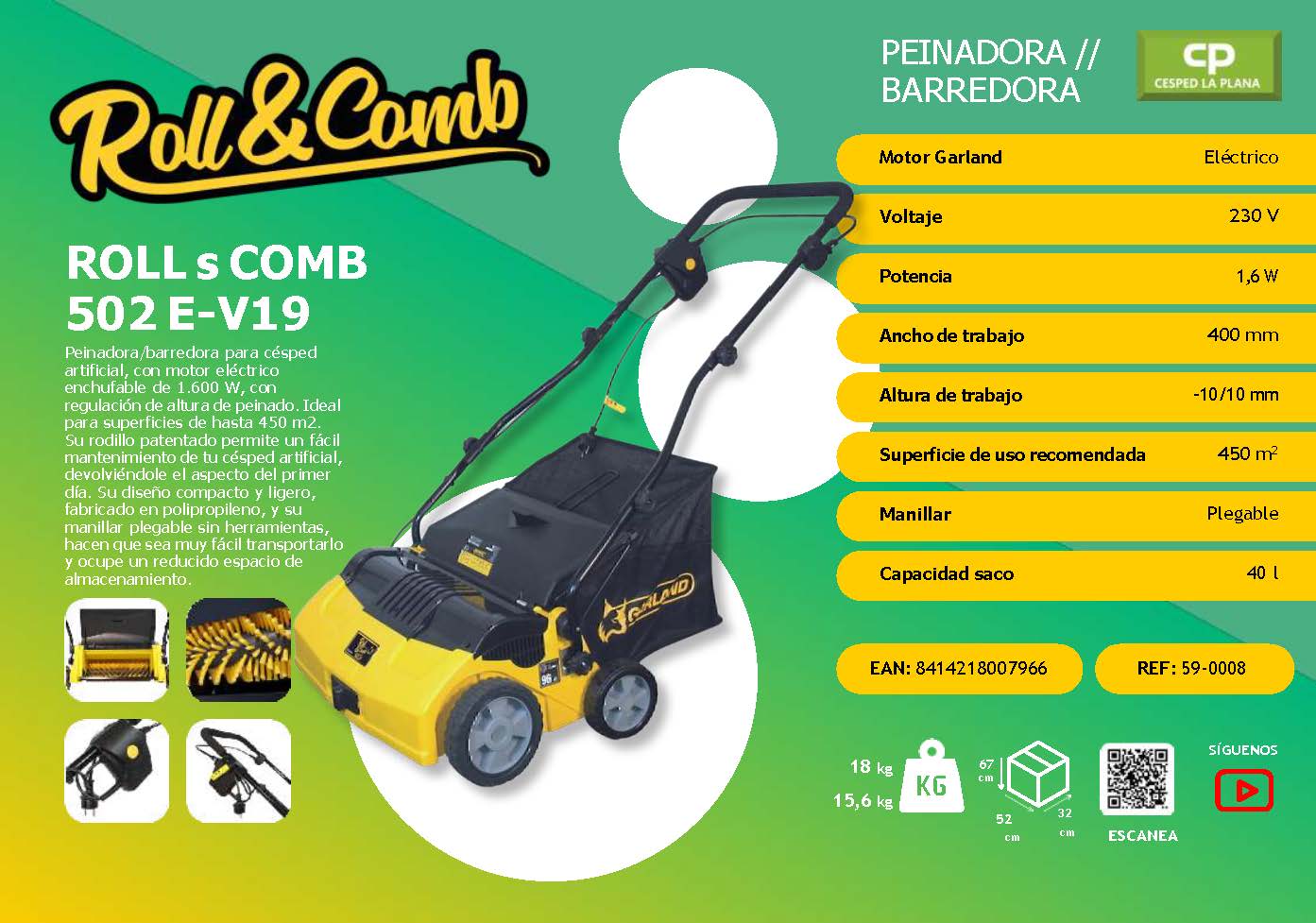 Peinadora/Barredora eléctrica enchufable – 1.600 W de potencia con 15,6 kg de peso.