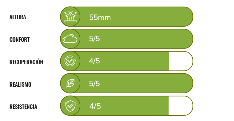 Una combinación de cuatro tonos de verde y rizado verde-beige, que recrean la variabilidad natural del césped real.