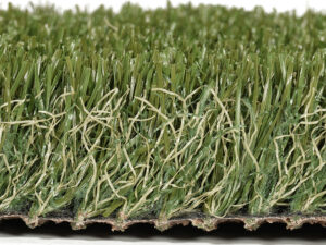 Utiliza un hilo monofilamento en ‘W’. Formado por la combinación de dos tonos verdes en los hilos rectos, así como verde y beige en el rizado, proporcionando un aspecto realista muy bien logrado.