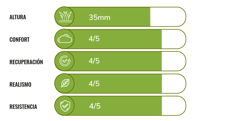 Modelo muy completo que cuenta con el equilibrio perfecto entre suavidad y resistencia, convirtiéndose en una opción ideal para cualquier espacio. Su alta densidad y volumen imitan a la perfección el césped natural, mientras que su base flexible facilita la instalación.