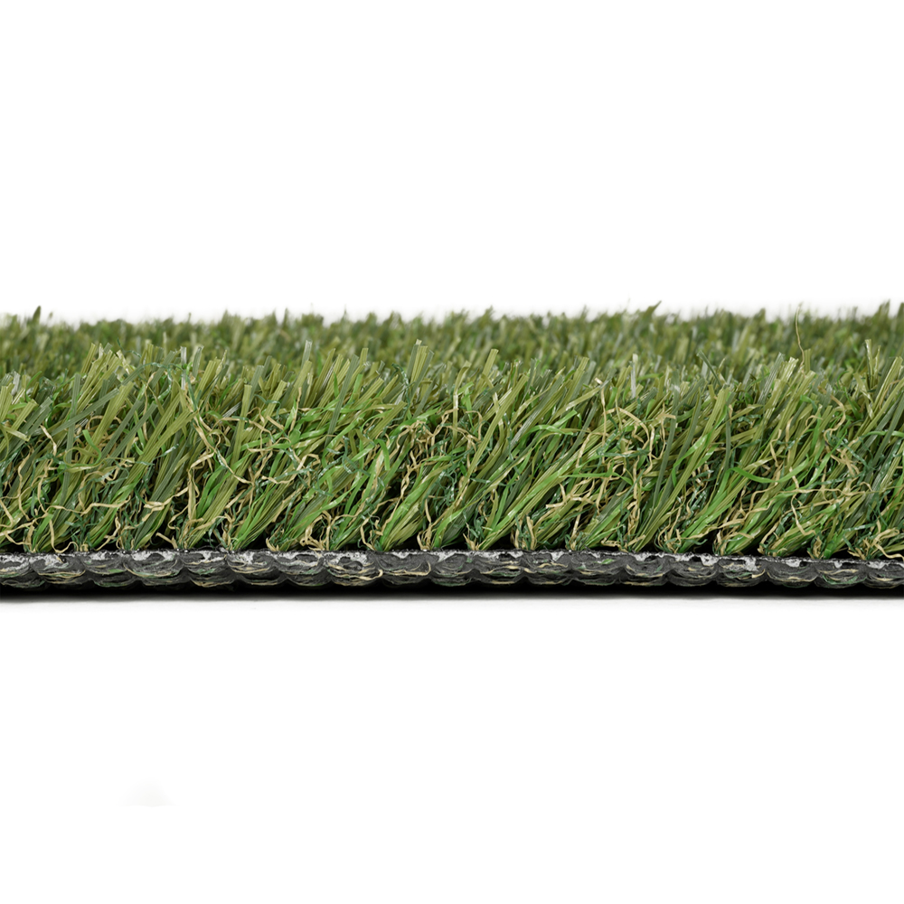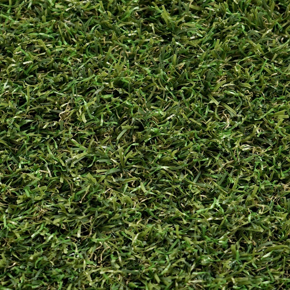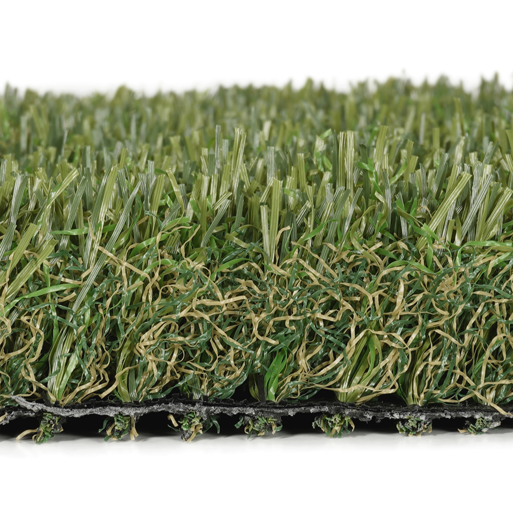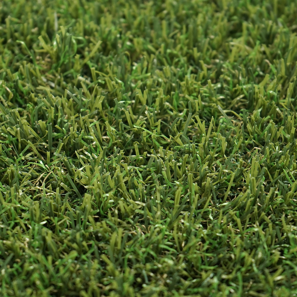 La combinación de tonos bicolores de verde en los monofilamentos rectos, y verde-beige en el rizado, simulan perfectamente la variabilidad natural del césped real.