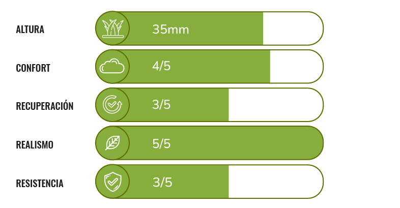 Césped artificial de 35 mm de altura.