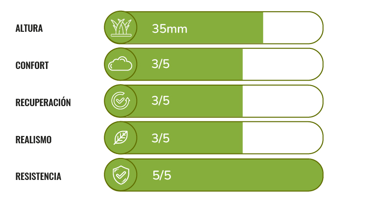 Césped artificial de 35 mm de altura.