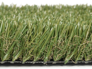 La combinación de dos tonos verdes en el hilo, así como dos tonos verdes y beige en el rizado, proporciona un acabado realista que simula perfectamente el césped natural.