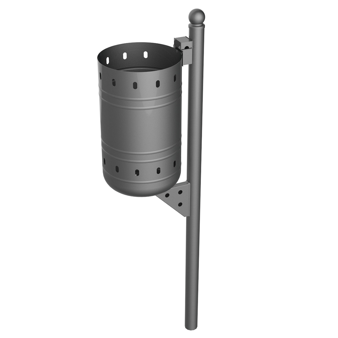 Papelera modelo Tenerife de plancha de acero embutida y pintada al horno, con acabado oxirón.