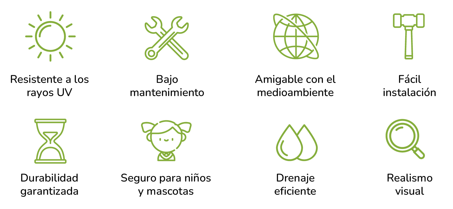 Ideal para niños y mascotas: Su superficie mullida y suave lo hace perfecto para que los más pequeños jueguen sin riesgos, y las mascotas puedan correr y descansar cómodamente. Además, al no utilizar productos tóxicos o fertilizantes, es una opción totalmente segura y saludable para todos.