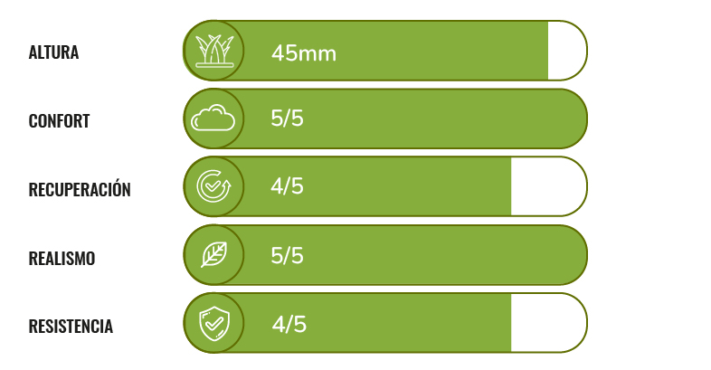 Césped artificial de 45 mm de altura.