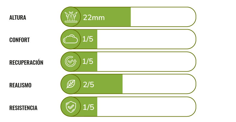 Formado por hilos finos que lo hacen suave al tacto e imitan perfectamente la textura y apariencia del césped natural recién cortado.